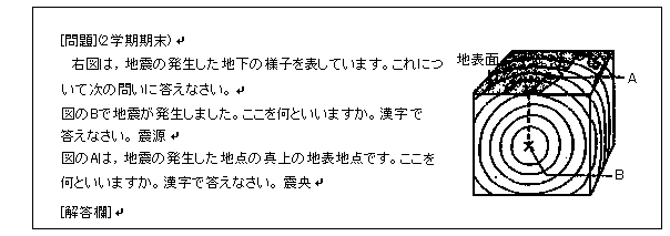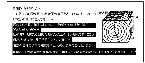 ・続いて「a.doc」4ページにある下の図の問題をコピーして,「My理科1年地震2問題.doc」に貼り付けます。