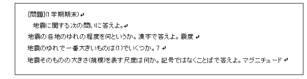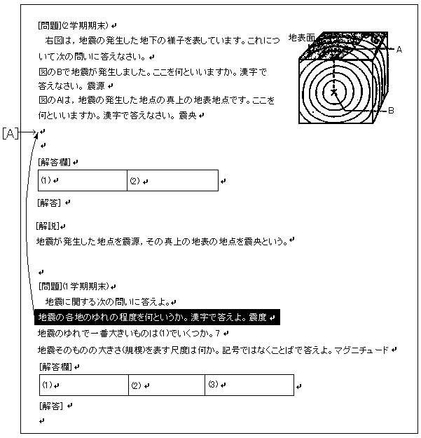 以上の作業によって,「My理科1年地震2問題.doc」は下の図のように,2つの問題が貼り付けられた状態になります。